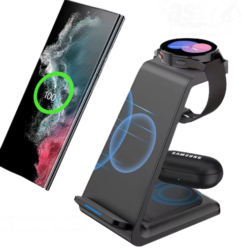 Carregador 3 em 1 sem fio para Samsung – smartphone, smartwatch e earbuds