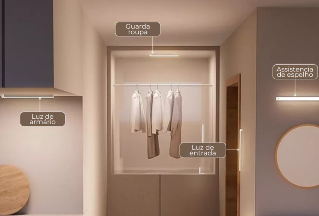 Prática e eficiente, esta luminária acende automaticamente ao detectar movimento, trazendo iluminação e segurança aos ambientes de forma econômica e fácil. Ideal para locais como armários, corredores, escadas e guarda-roupas, ela oferece conforto e praticidade com sua instalação por fita magnética — sem necessidade de parafusos!